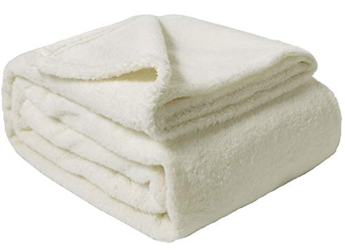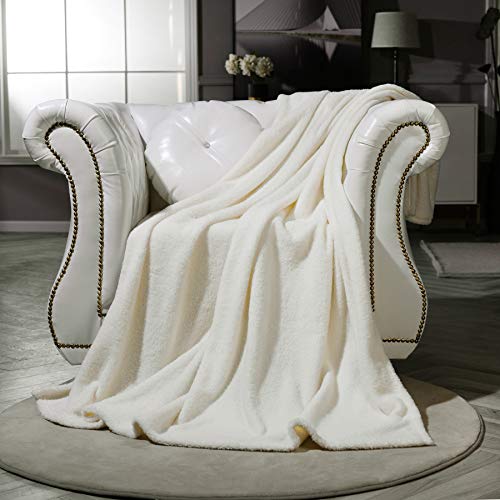 Luxuriöse Doppel Kuscheldecke, Fleecedecke Teddybär Überwurf für Sofa bett Luxus weich warm, Sahne
