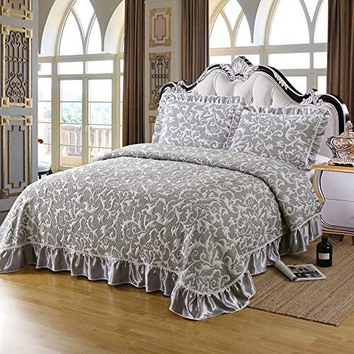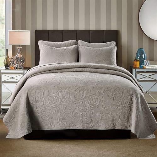 Luxuriöses 3-teiliges Tagesdecken-Set mit 2 Kissenbezügen, weich, wendbar, waschbar, Bettüberwurf, grau, 240 x 260 cm