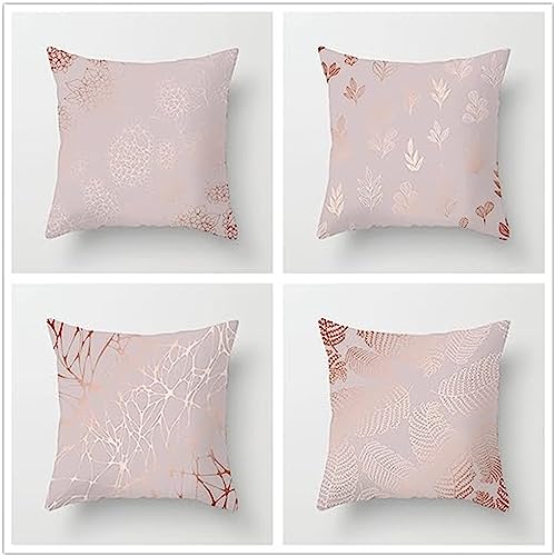 LVTFCO Samt 4er Set Kissenbezug weiche Kissenbezüge 90x90cm,Rosa geometrische Blätter Kissenhülle mit Verstecktem Reißverschluss Zierkissenbezug für Sofa Stuhl Schlafzimmer Wohnzimmer Dekokissen