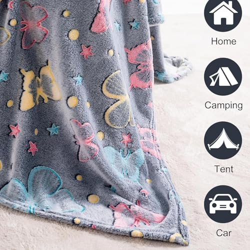 【Leuchtendes Design】Es macht unglaublich viel Spaß, eine Kinder Decke 5-10 Minuten in die Sonne oder unter eine starke Lichtquelle zu legen, bevor man sie in die Dunkelheit legt, und sie leuchtet im Dunkeln. Eine flauschige Decke mit Schmetterling Druck leuchtet im Dunkeln und schafft ein wunderbares Ambiente in Ihrem Schlafzimmer.