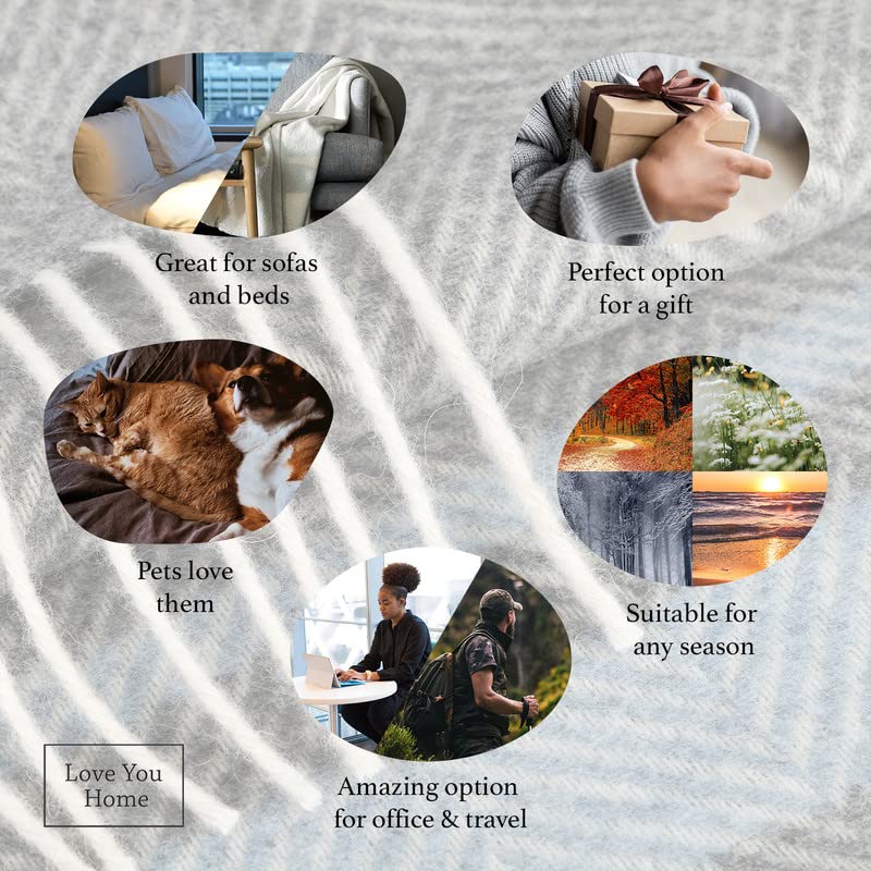 STILVOLL UND VIELSEITIG 🛋️ Per den Maßen 140×200 cm inklusive 5 cm Fransen ist diese Decke ein stilvolles Highlight statt dessen Ihr Zuhause. Vielseitig denn Sofadecke, Wollplaid oder Outdoor-Decke einsetzbar.