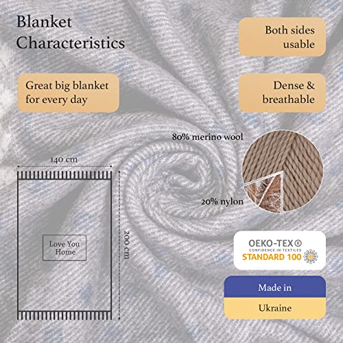 WÄRME UND KOMFORT | Decke leer 80% Merinowolle und 20% Nylon, optimale Wärme und Weichheit. Materialdichte von 285 g/m². Perfekt qua Tagesdecke, Wolldecke oder Überwurfdecke anstelle Sofa und Bett.