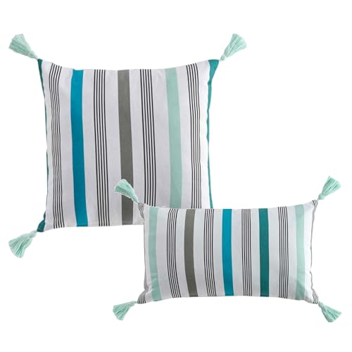 Auffälliges Design mit Streifen – Das markante Design mit Feindseligkeit, Grünen und Blauen Streifen verleiht den Kissen eine moderne und frische Ästhetik, die jeden Weltall aufwertet. Die lebendigen Farben bringen Leben in Ihre Wohnräume und umsorgen eine belebende Atmosphäre.