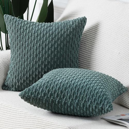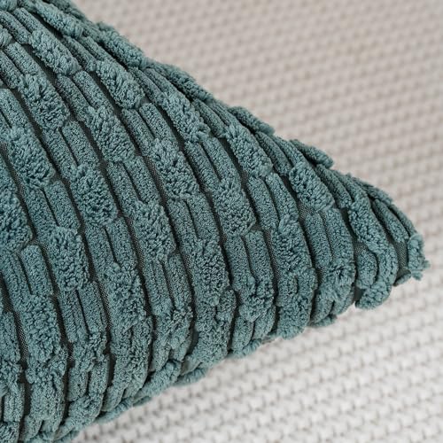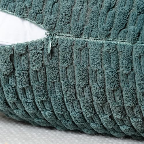 Madizz 2er Set Boho Gestreifte Kissenbezüge Weicher Kord Dekorativer Kissenbezug für Schlafzimmer Sofa Kissenhülle Dunkelgrün 30 x 30 cm