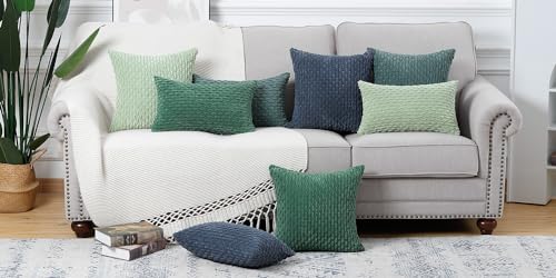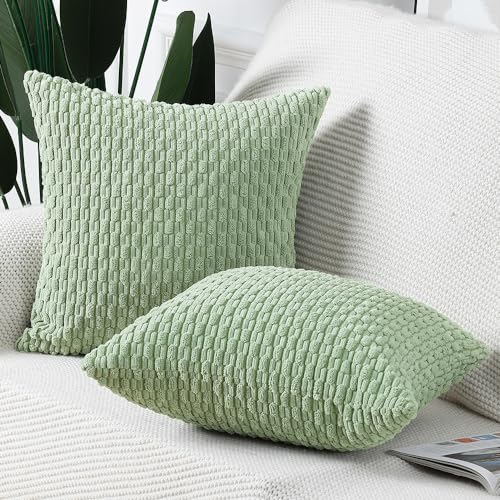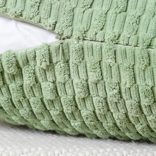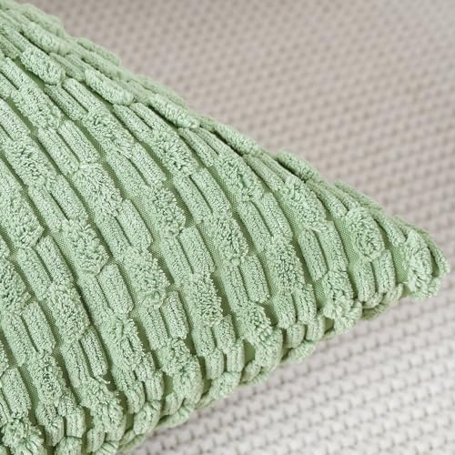 Madizz 2er Set Boho Gestreifte Kissenbezüge Weicher Kord Dekorativer Kissenbezug für Schlafzimmer Sofa Kissenhülle Hellgrün 65 x 65 cm