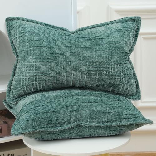 Madizz 2er Set Chenille Dekorativ Kissenbezüge Weiche neutrale Wurfkissen für Sofa Boho Akzent Zierkissenbezüge für Schlafzimmer Wohnzimmer Modernes Zuhause Dekor Tealblau 40×60 cm