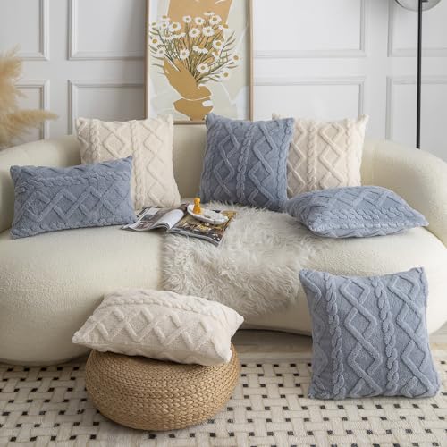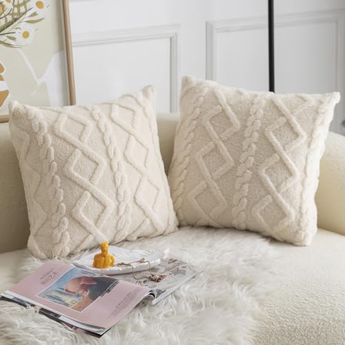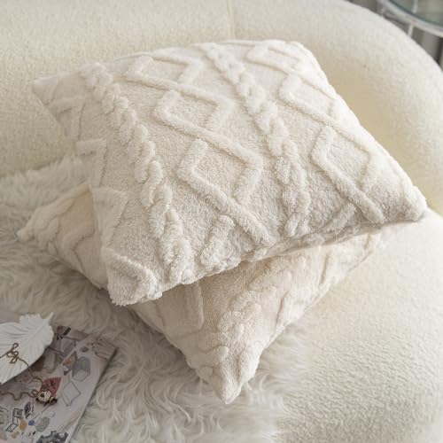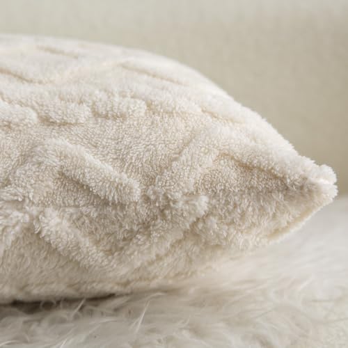 Madizz 2er Set Doppelseitig Kurze Wolle Kissenbezüge Dekorative Zierkissenbezüge für Schlafzimmer Sofa Kissenhülle 45×45 cm Creme Weiß
