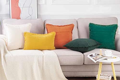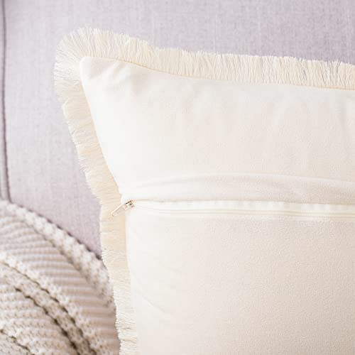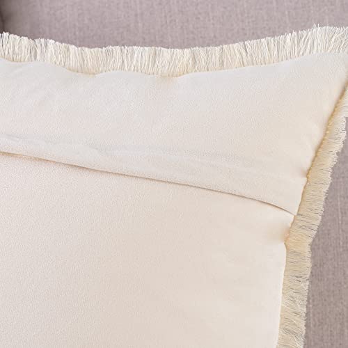 Madizz 2er Set Kissenbezügen aus Wildleder mit Fransenquasten Weiche dekorative Kissenbezüge für Sofa Schlafzimmer Kissenhülle Beige 45×45 cm Quadrat