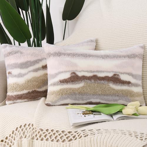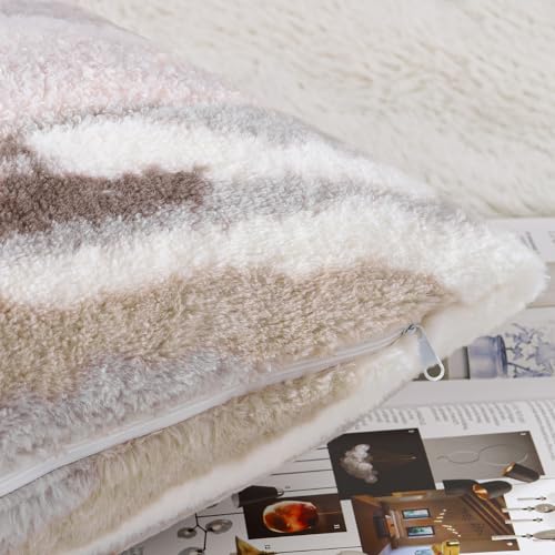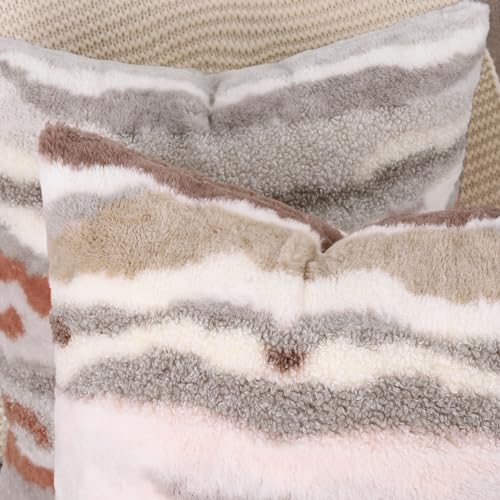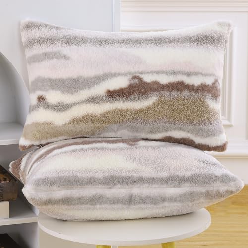 Madizz 2er Set Kunstpelz Fleece Zierkissenbezüge Dekorative Weich Kissenhülle Dekokissen Sofakissen Lendenkissen für Sofa Schlafzimmer Grau Braun 40×60 cm