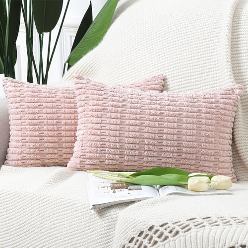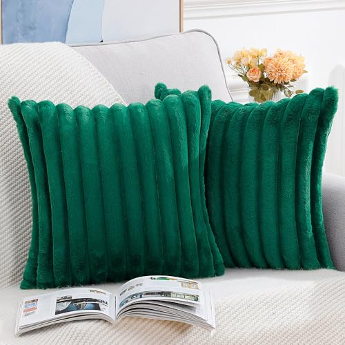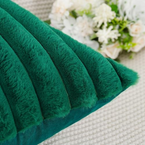 Madizz 2er Set Kunstpelz Plüsch Dekorative Kissenbezüge Flauschig Gestreifte Weich Dekorative Kissenbezug für Sofa Schlafzimmer Kissen Shell Grün 50 x 50 cm