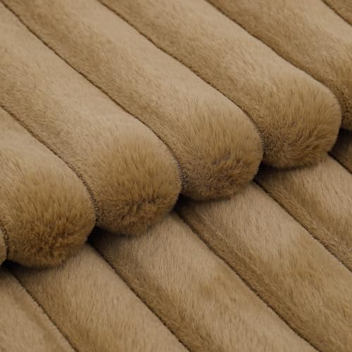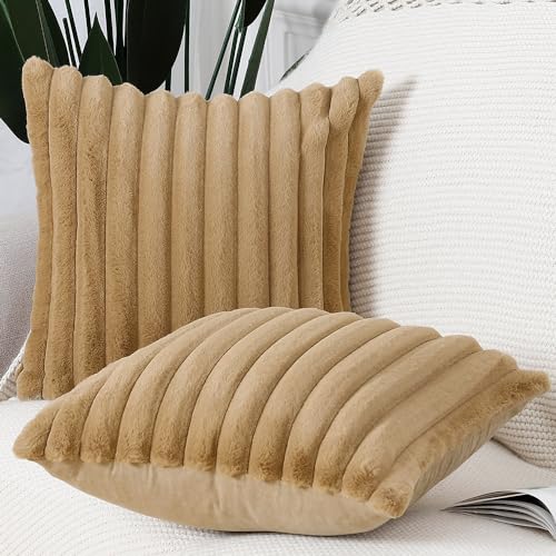 Madizz 2er Set Kunstpelz Plüsch Dekorative Kissenbezüge Flauschig Gestreifte Weich Dekorative Kissenbezug für Sofa Schlafzimmer Kissen Shell Kamel 40 x 40 cm