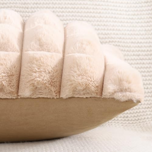 Design: Versteckter Reißverschluss. Reiche gestreifte Kunstpelzfront, Samtrücken.