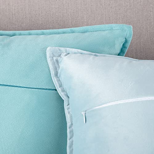 Madizz 2er Set Samt Dekorativ Zierkissenbezüge Luxus Stil Kissenbezug für Sofa für Schlafzimmer Hellblau 60×60 cm Quadrat