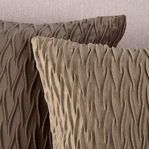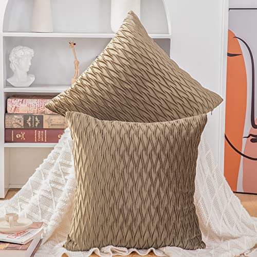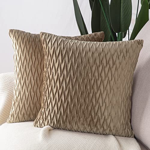 Madizz 2er Set Samt Dekorativ Zierkissenbezüge Luxus Stil Kissenbezug für Sofa für Schlafzimmer Hellbraun 40×40 cm Quadrat