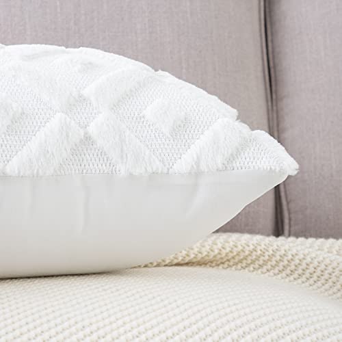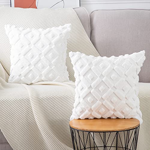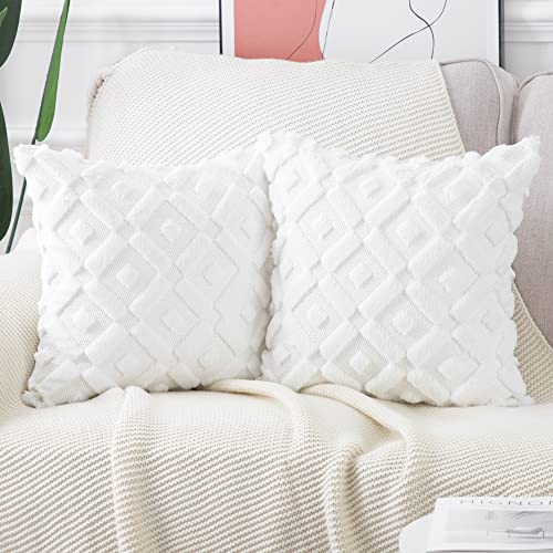 Madizz 2er Set Sanft Plüsch Kurze Wolle Samt Dekorativ Zierkissenbezüge Luxus Stil Kissenbezug für Sofa für Schlafzimmer Weiß 40×40 cm Quadrat