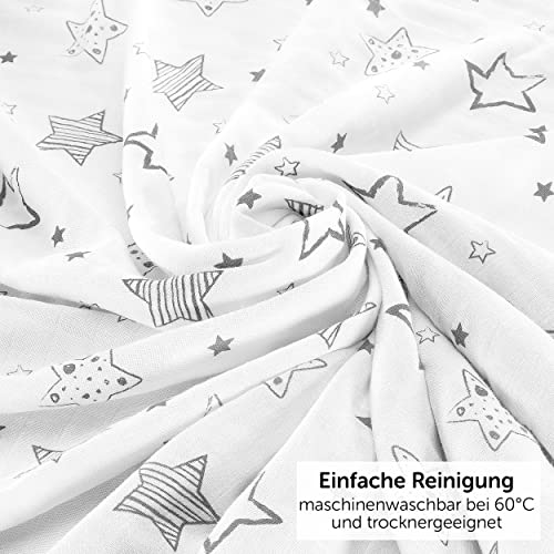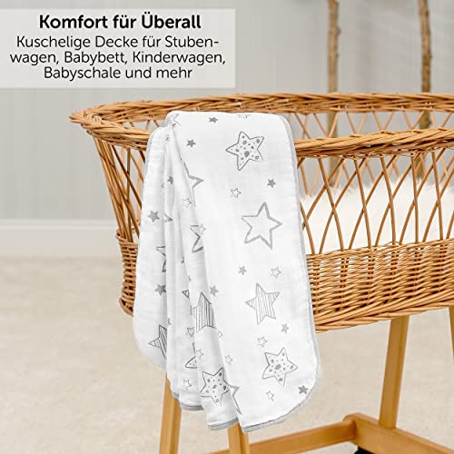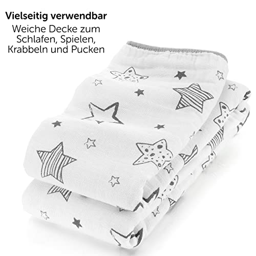 MAKIAN Kuscheldecke Sommer Babydecke Sterne – 120×120 cm, 100% Baumwolle, Oeko-TEX® Standard 100 geprüft/Kinderdecke zum Schlafen, Wickeln, Krabbeln & Spielen – Weiß Grau