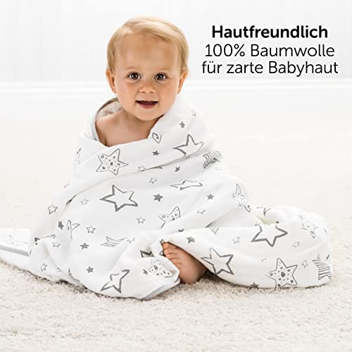 HAUTFREUNDLICH & PFLEGELEICHT: 100% Baumwolle für zarte Haut von Neugeborenen. Geht beim Stillen oder Wickeln etwas dabenen, wäschst du die Schmusedecke einfach in der Maschine (maschinenwaschbar bei 60°C; trocknergeeignet)
