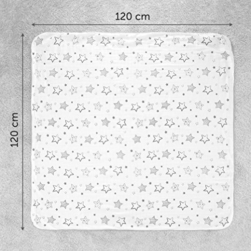 LIEBLINGSDECKE UND NOCH MEHR: Multifunktional – Stilltuch, Wickelunterlage, Krabbeldecke, Pucktuch oder Kinderwagendecke statt dessen den Buggy – die 4-lagige Baby Mulldecke ist durch einer Größe von 120 x 120 cm vielfach einsetzbar des Weiteren wächst ab Provenienz durch.