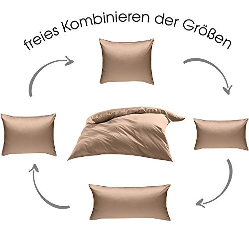 Inhalt: 1 Kissenbezug 50×50 cm. Mako-Satin Bettwäsche ganz 100% Baumwolle. Farbe: hellbraun. Produziert in der EU (Made in EU).