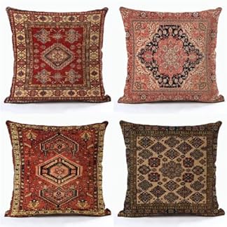 Mandala Kissenbezug 80 x 80 cm Sofakissen Super Weich Kopfkissen 4er Set Teppichmuster Kissen Deko Kissenhülle mit Reißverschluss Kopfkissenbezug Quadrat Kissen für Garten Schlafzimmer Wohnzimmer R540