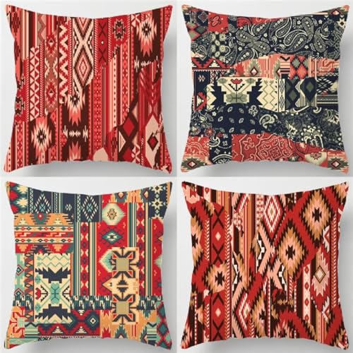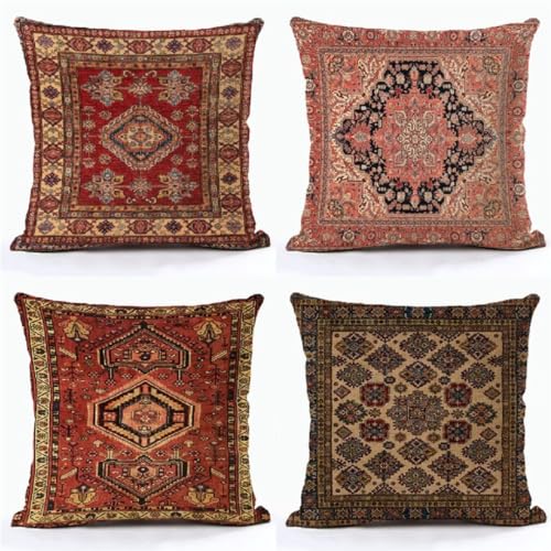 Mandala Kissenbezug 80 x 80 cm Sofakissen Super Weich Kopfkissen 4er Set Teppichmuster Kissen Deko Kissenhülle mit Reißverschluss Kopfkissenbezug Quadrat Kissen für Garten Schlafzimmer Wohnzimmer R540