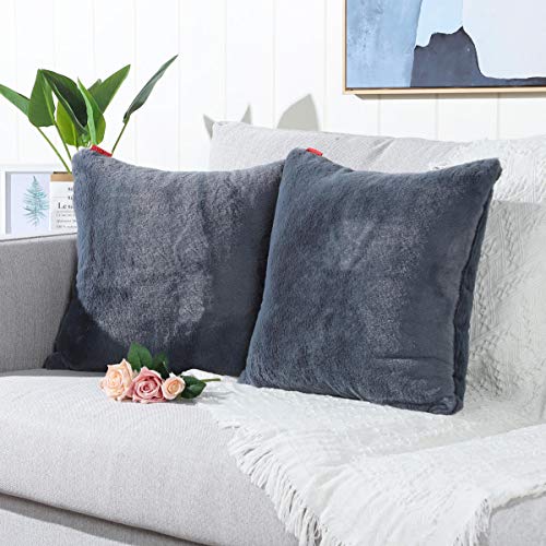 Mandioo 2er Set 40×40 cm Grau Faux Fur Flauschigen Kissenbezüge Moderne Künstlich Pelz Kissenhüllen Dekorative Sofakissen Dekokissen Weicher Zierkissenbezug für Wohnzimmer Sofa Schlafzimmer