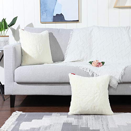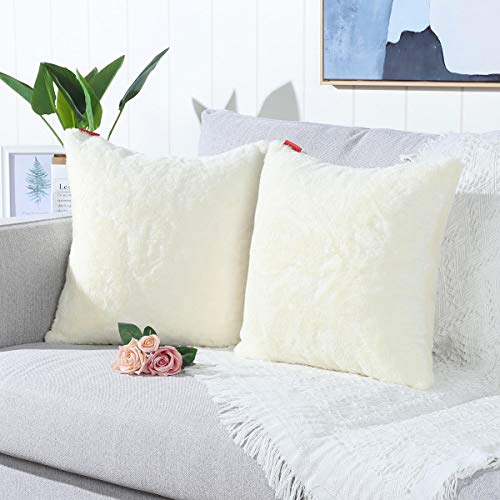 Mandioo 2er Set 45×45 cm Cremegelb Faux Fur Flauschigen Kissenbezüge Moderne Künstlich Pelz Kissenhüllen Dekorative Sofakissen Dekokissen Weicher Zierkissenbezug für Wohnzimmer Sofa Schlafzimmer