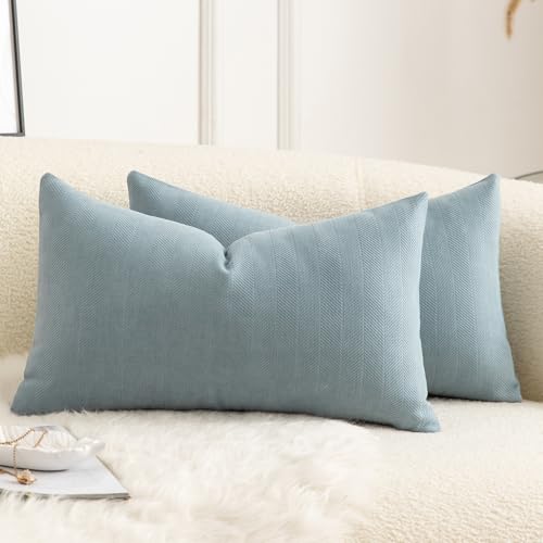 Mandioo 2er Set Kissenbezug 30×50 cm Hellblau Chenille Kissenbezüge weich Gemütlich langlebig modern Zierkissenbezug Dekokissen Kissenhülle für Sofa Wohnzimmer Schlafzimmer