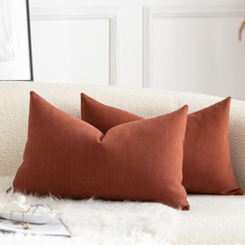 Mandioo 2er Set Kissenbezug 30×50 cm Rostfarbe Chenille Kissenbezüge weich Gemütlich langlebig modern Zierkissenbezug Dekokissen Kissenhülle für Sofa Wohnzimmer Schlafzimmer