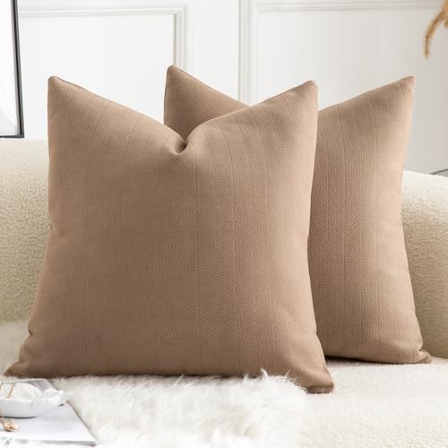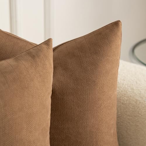 Mandioo 2er Set Kissenbezug 50×50 cm Braun Chenille Kissenbezüge weich Gemütlich langlebig modern Zierkissenbezug Dekokissen Kissenhülle für Sofa Wohnzimmer Schlafzimmer