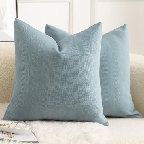 Mandioo 2er Set Kissenbezug 50×50 cm Hellblau Chenille Kissenbezüge weich Gemütlich langlebig modern Zierkissenbezug Dekokissen Kissenhülle für Sofa Wohnzimmer Schlafzimmer
