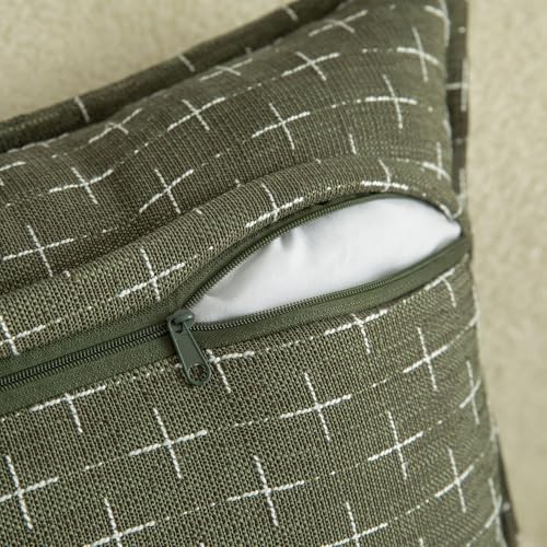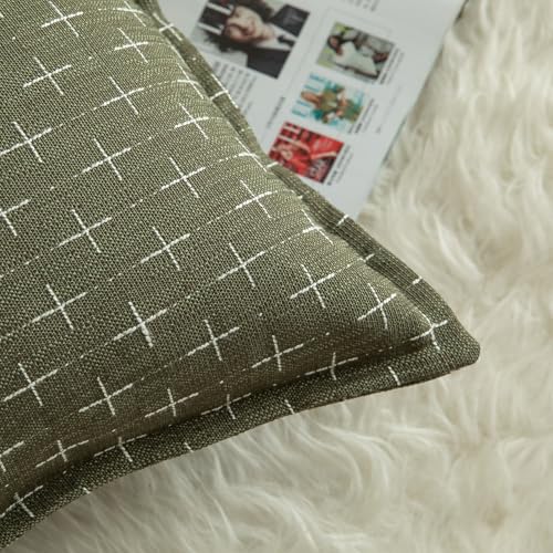 Mandioo 2er Set Kissenbezug Hanftuch Weben Textur Modern Bauernhaus Kissenbezüge Kissenhülle Dekorieren Zierkissenbezug Sie Wohnzimmer Sofa Schlafzimmer Bett 40x40cm Olivgrün