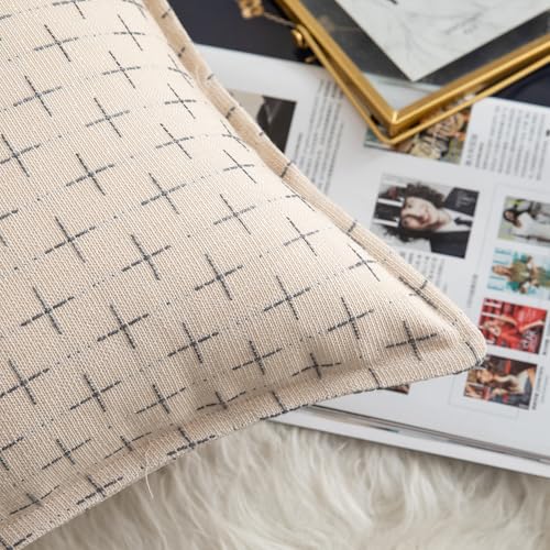 Mandioo 2er Set Kissenbezug Hanftuch Weben Textur Modern Bauernhaus Kissenbezüge Kissenhülle Dekorieren Zierkissenbezug Sie Wohnzimmer Sofa Schlafzimmer Bett 40x60cm Grau weiß