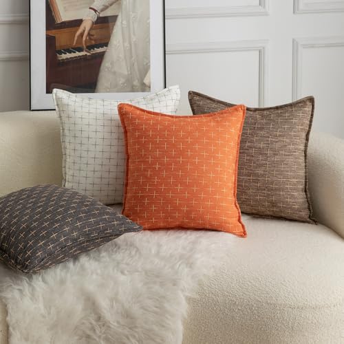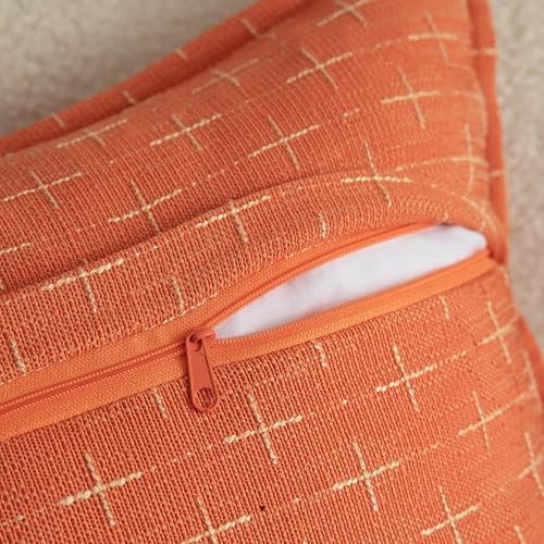 Mandioo 2er Set Kissenbezug Hanftuch Weben Textur Modern Bauernhaus Kissenbezüge Kissenhülle Dekorieren Zierkissenbezug Sie Wohnzimmer Sofa Schlafzimmer Bett 60x60cm Orange