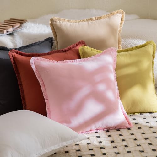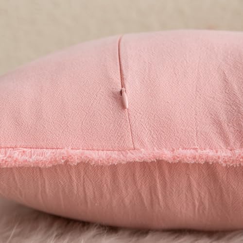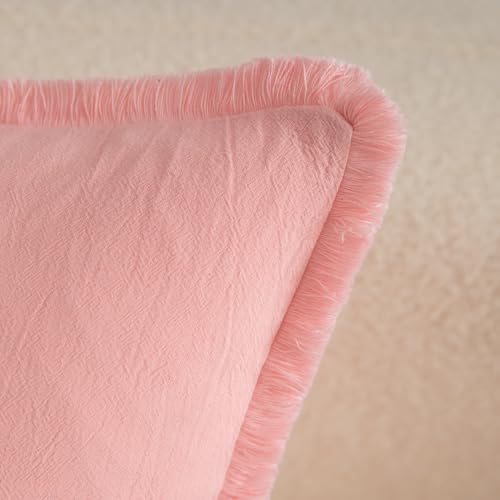 Mandioo 2er Set neutralen Baumwolle Quasten Kissenbezug 30x50cm Dekorative Kissenbezüge Dekokissen Boho Sofakissen Kissenhülle für Couch Sofa Schlafzimmer Wohnzimmer Heimdekoration Rosa