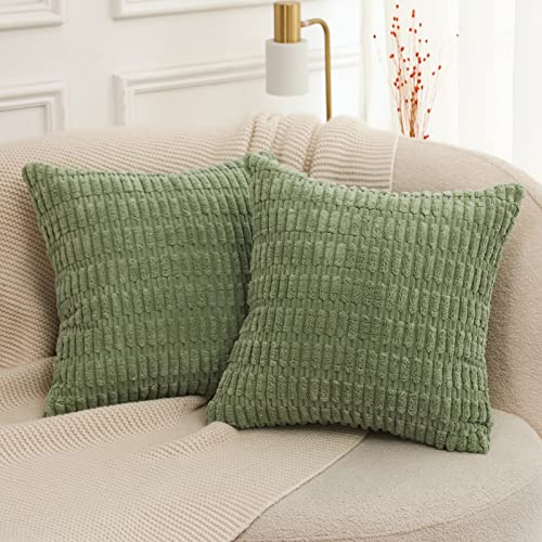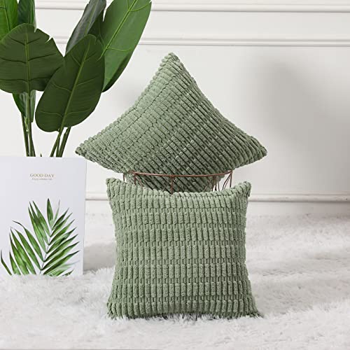Mandioo 2er Set Salbei grün Plüsch Boho Dekorative Wurf Kissenbezüge 40×40 cm, Super Weich gestreifte Cord Dekokissen Kissenbezug Sofakissen Dekorativ Couchkissen Kissenhülle statt dessen Sofa Couch Wohnzimmer