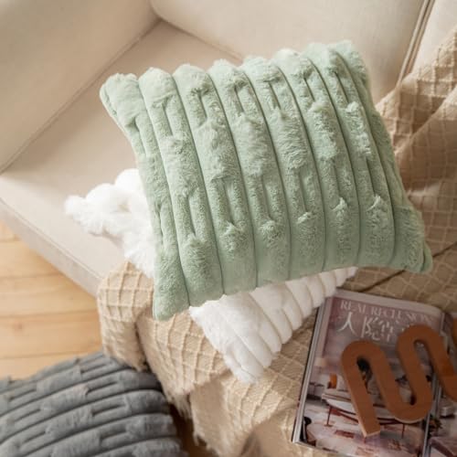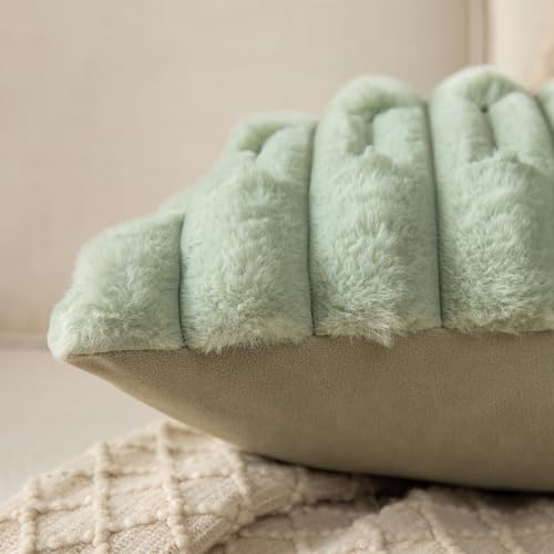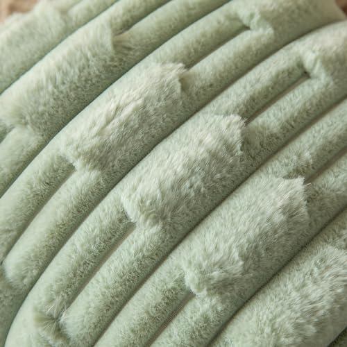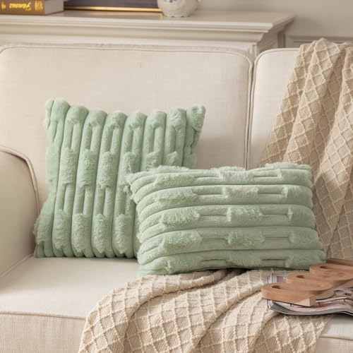 MANDIOO 2er Set Salbeigrün Boho gestreiften dekorativen Kissenbezüge 30x50cm flauschiges Wurfkissenbezug aus künstlichem Kaninchenfell Velvet Kissenhüllen Kopfkissenbezug Sofa Couch Bett Wohnzimmer