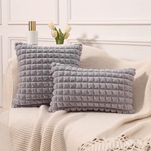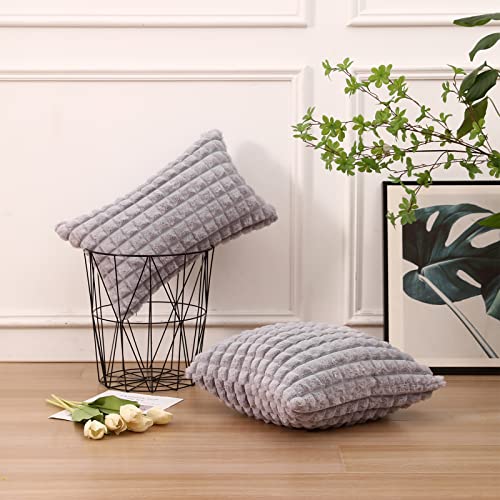 Mandioo 2er Set Super Soft Plüsch Faux Pelz Dekokissen Lumbar Kissenbezüge 30×50 cm Hellgrau, Plaid Textur Moderne Luxus Kissenbezug Sofakissen Dekorativ Couchkissen Kissenhülle für Sofa Couch