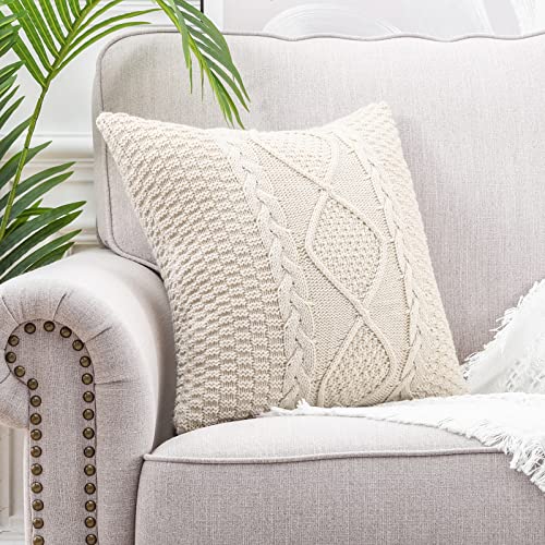 Mandioo Baumwolle gestrickte Beige dekorative Lumbar Wurf Kissenbezüge Abzweigung Gemütliche Kissenbezug Luxus Moderne Dekorativ Couchkissen Kissenhülle für Sofa Couch Wohnzimmer 50 x50 cm