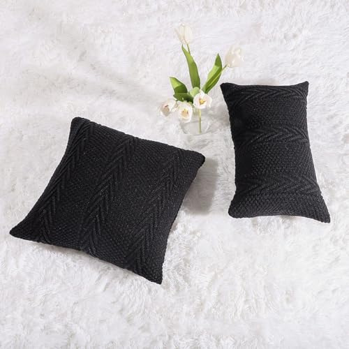 Mandioo Baumwolle gestrickte Schwarz dekorative Wurf Kissenbezüge Weiche Gemütliche Zierkissenbezug Luxus Moderne Dekorativ Couchkissen Kissenhüllen für Sofa Couch Wohnzimmer 30×50 cm