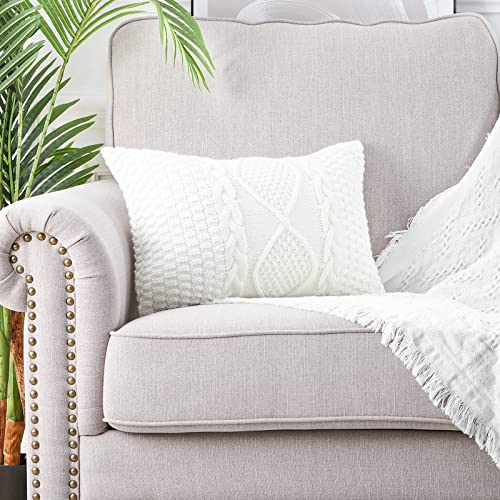 Mandioo Baumwolle gestrickte weiße dekorative Lumbar Wurf Kissenbezüge Gabelung Gemütliche Kissenbezug Luxus Moderne Dekorativ Couchkissen Kissenhülle für Sofa Couch Wohnzimmer 30×50 cm