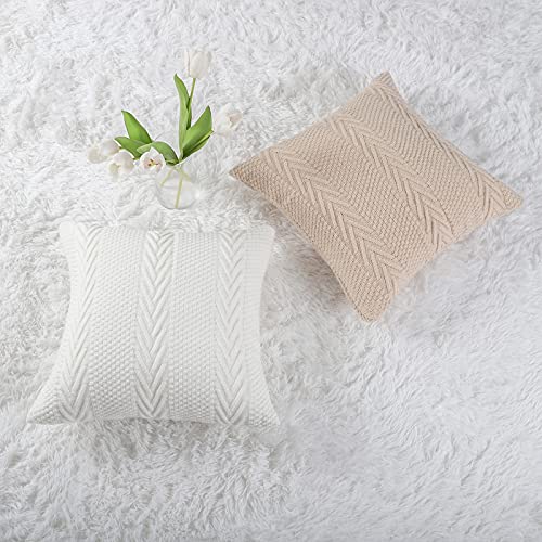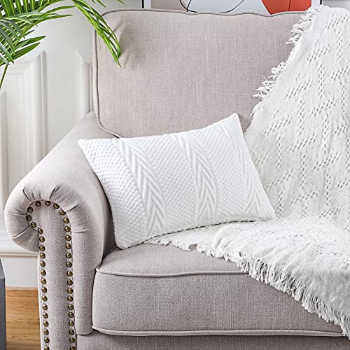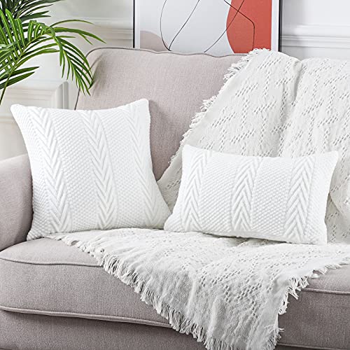 Mandioo Baumwolle gestrickte weiße dekorative Wurf Kissenbezüge Weiche Gemütliche Zierkissenbezug Luxus Moderne Dekorativ Couchkissen Kissenhüllen für Sofa Couch Wohnzimmer 30×50 cm