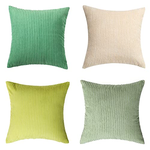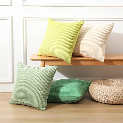 Mandioo Dekorative Wurf Kissenbezüge18 x 18,Set von 4 Grade Minimalism, Mix and Match Funky Cord Dekokissen Kissenbezug Couchkissen Kissenhülle für Home Sofa Schlafzimmer Wohnzimmer,Salbei grün