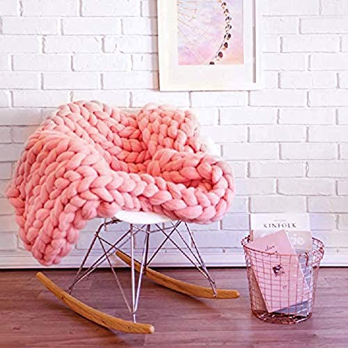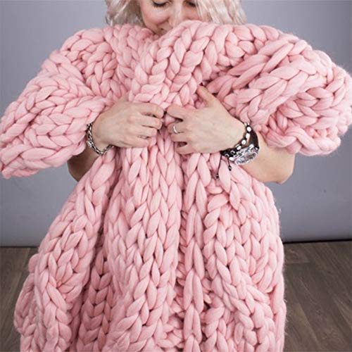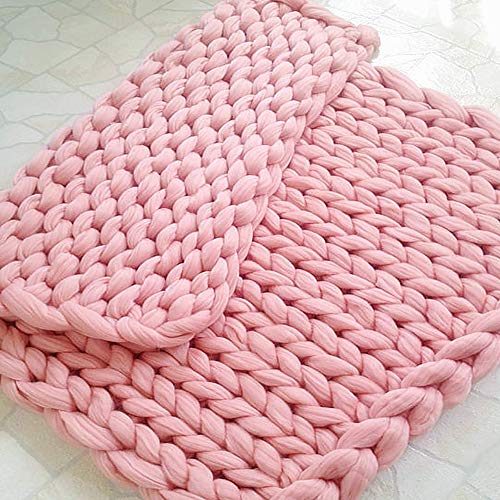 MANG Chunky Gestrickte Decke Handgefertigtes Strickdecke Große Kuscheldecke Klobige Überwurf, Rosa/Dunkelgrau, 100 X 120 cm (39,4″x 47,2″)