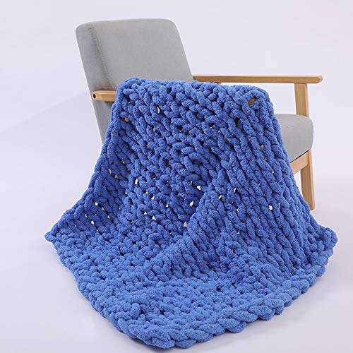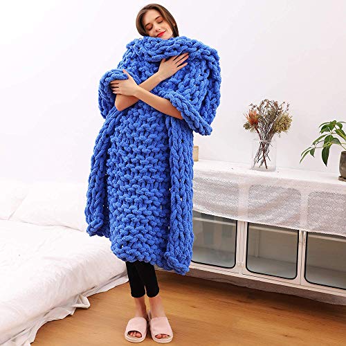 MANG Chunky Strickdecke Weiß Gestrickte Decke Handgewebte Kuscheldecke Große Klobige Stricken Werfen Maschine Waschbar, Beige/Blau, 150 * 200cm