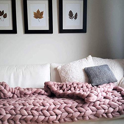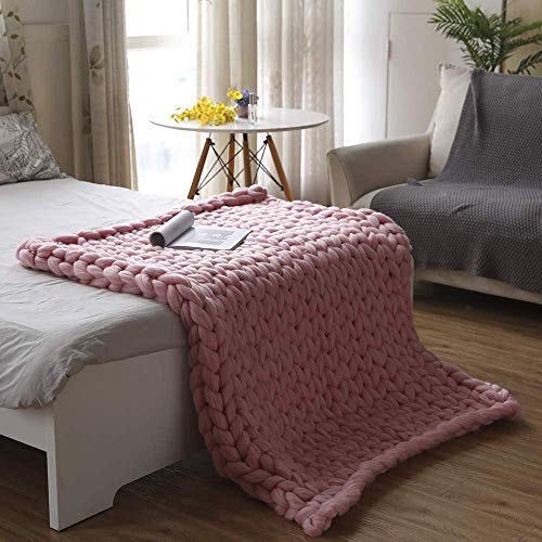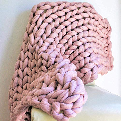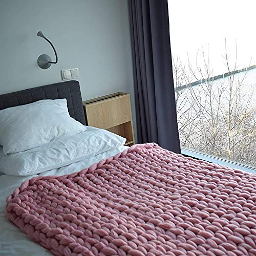 MANG Grob Gestrickte Kuscheldecke Chunky Strickdecke Handgefertigtes Wolldecke Große Häkeldecke Super Große Arm Dekor Geschenk, 180cm * 200cm, Rosa