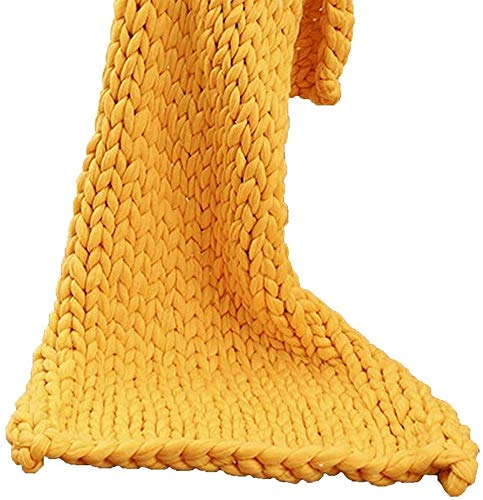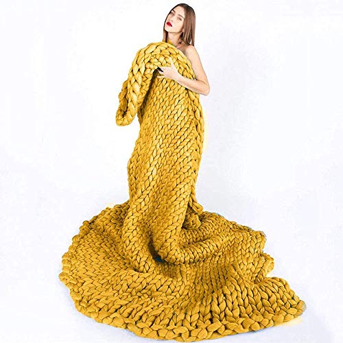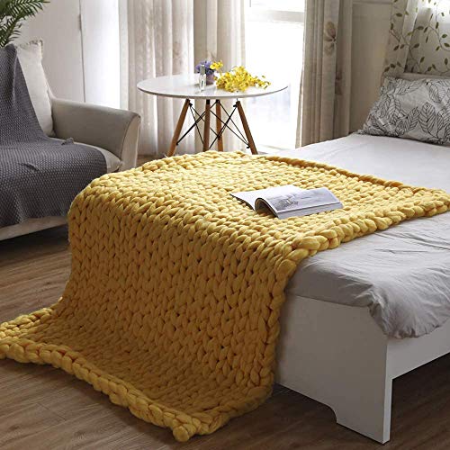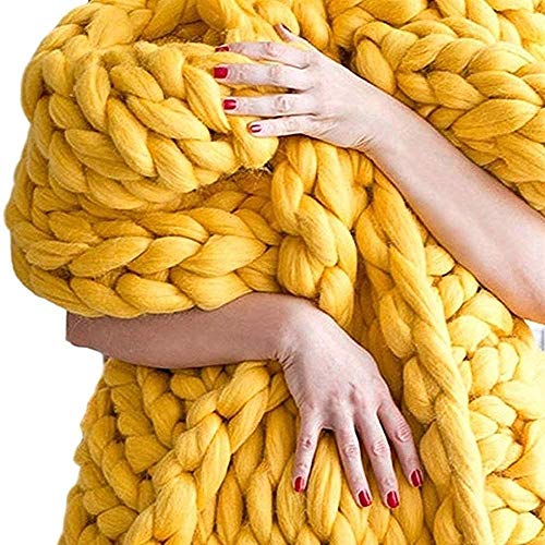 MANG Große Gestrickte Decke Handgefertigtes Sperrig Decke Chunky Strickdecke Strick-Kuscheldecke Zuhause Dekor Geschenk Weiß/Gelb/Marine, 120 * 150cm