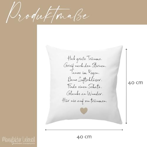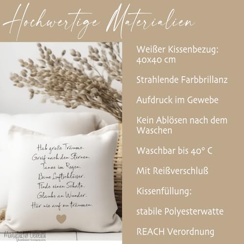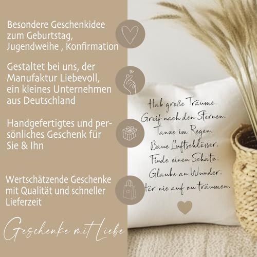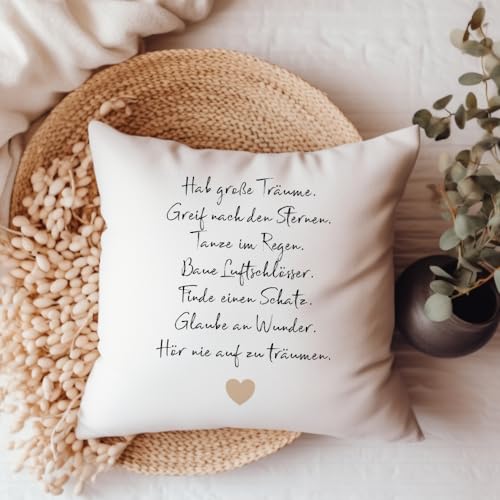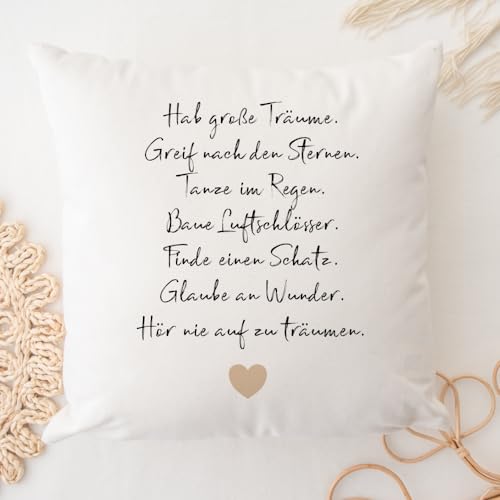 KISSEN GESCHENK: Kissen mit Spruch „Hab große Träume“ zum Geburtstag, Einschulung, Jugendweihe, Taufe, Konfirmation, Kommunion, Taufe