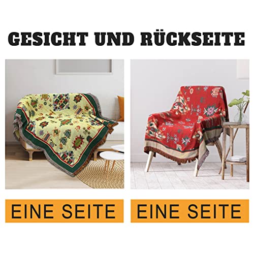💖【PERFEKTES GESCHENK】Sofa-Überwurfdecke: Die Boho-Überwurfdecke misst 130 x 180 cm. Kann als Sofabezüge, Teppiche, Tagesdecken und mehr verwendet werden. Sofadecken können Ihre Sofamöbel vor Flecken schützen und Kratzer verkleinern, wodurch die Lebensdauer Ihres Sofas verlängert wird. Decken sind das perfekte Geschenk für Weihnachten, Geburtstage und Einweihungspartys. Bekannt als als Geschenk für Familie und Freunde.