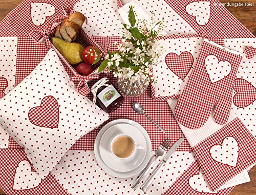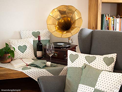 Kissenüberzug / Kissenhülle LISE kariert mit Borte & Herz-Applikation Landhaus-Stil in grün
